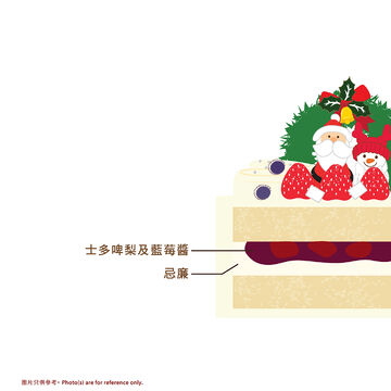 Sweet strawberries paired with snowy white cream and marshmallow — the classic red-and-white Christmas color is utterly captivating! The cake layers feature strawberry and blueberry jam, perfectly complementing the fluffy sponge cake for a burst of fruity aroma. Santa Claus and Snowman await you in this "Dazzling Wonderland," ready to embark on a Christmas adventure together!