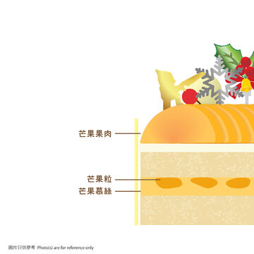 This Christmas, our online exclusive bestselling treasure box launches a Christmas limited-edition version! Beyond an upgraded bounty of ingredients, its design evokes an exquisite Christmas gift, brimming with festive charm. Shimmering Christmas Night topped with blanketed in plump, juicy mango chunks, which is succulent and refreshing. It's accented by whimsical Christmas ornaments, making it an Instagram-worthy showstopper. Layered within is silky mango mousse, its velvety texture mingling with fruit and sponge cake for an aromatic burst. The overall sweetness strikes perfect harmony while delivering a delightful medley of textures!