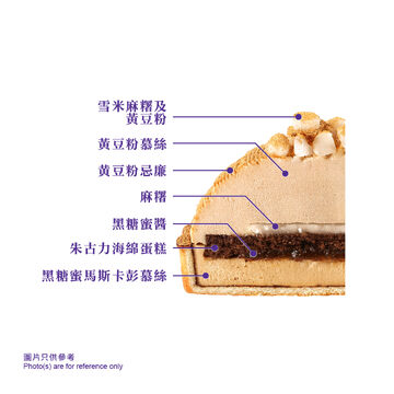 A delightful fusion of Japanese wagashi.A silky kinako mousse made with kinako (soybean) flour from Kikyo Shingen Mochi, layered with smooth kinako cream and a touch of kuromitsu (black sugar syrup) for added depth and mellow sweetness. Soft and chewy mochi is added between that brings the signature bouncy texture of the Kikyou Shingen Mochi. The base is made with a light chocolate sponge cake paired with a subtle black sugar mascarpone mousse that beautifully balances the sweetness, creating a harmonious blend of Japanese and Western dessert traditions. A fresh and sophisticated treat that no dessert lover should miss!