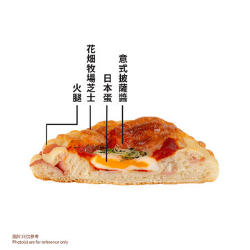 花畑牧場芝士火腿日本蛋軟包採用花畑牧場(Hanabatake Bokujo)出品的北海道十勝產芝士,品質極高,奶香濃郁獨特,而且風味層次豐富!搭配鮮嫩的日本蛋以及帶鹹香的火腿和意式披薩醬,配料完美融合軟綿麵包中。每口咬下,蛋香與芝香瞬間爆發,絕對能為您的早晨注入活力,是每日早餐的理想選擇!