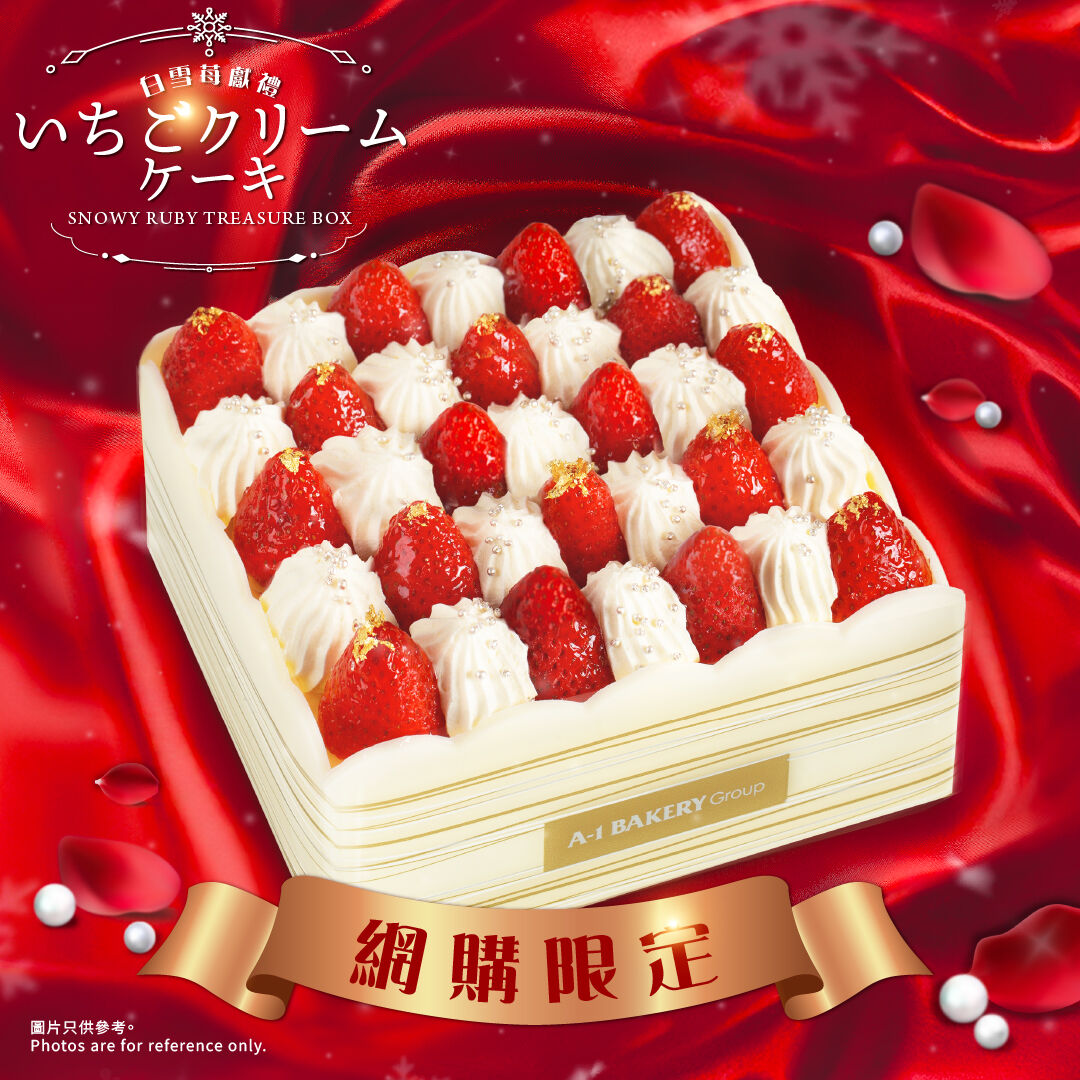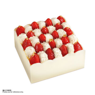 由A-1 Bakery日籍蛋糕師傅團隊研發及製作,【網購限定】白雪苺獻禮 (15cm) 士多啤梨忌廉蛋糕矚目登場!日籍團隊嚴選每款蛋糕食材,精心烘焙,每個細節均用心打造。「白雪苺獻禮」以精緻禮物寶盒造型為設計概念,蛋糕面層鋪滿原粒新鮮士多啤梨,粒粒色澤鮮艷,與鮮忌廉映襯。士多啤梨頂部更撒上閃亮的金箔碎,每一啖盡嚐奢華幸福感。 整個寶盒造型蛋糕外表高貴精緻,同時味道層次豐富,內裡的海綿蛋糕夾層配以士多啤梨醬。非常適合送給你珍而重之的親友或伴侶,無論是用作特別節日慶祝或「打卡」都不失禮!此產品為【網購限定】款式,只限網店預訂,數量有限,售完即止。