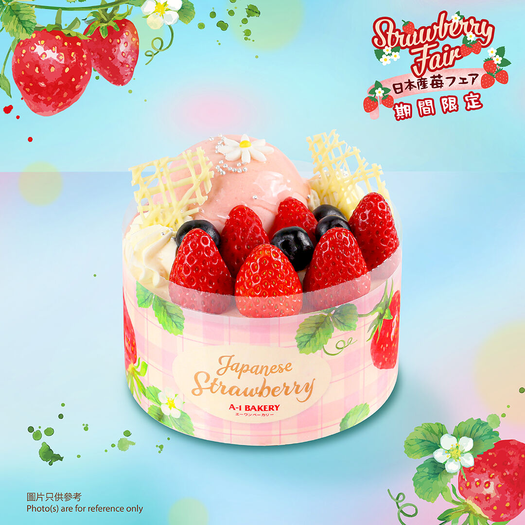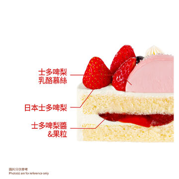 經典日本士多啤梨忌廉蛋糕,香甜多汁的原粒士多啤梨,完美協調藍莓及士多啤梨乳酪慕絲。鬆軟海綿蛋糕夾層加入士多啤梨醬及果粒,甜酸搭配令味道層次分明,讓春天更動人、更閃耀!兩款尺寸可選,大小聚會都可以共享這份春日限定的美味!