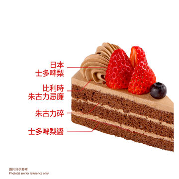 清甜日本士多啤梨配搭朱古力海綿蛋糕的基底,融合比利時朱古力忌廉及朱古力碎,苦甜的可可與清新果香交織,層次豐富卻清爽不膩,這款單人份的精緻甜點,絕對是您隨手都可享用的春日小確幸!