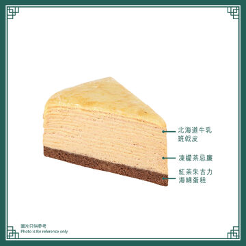 檸檬茶千層蛋糕以一層北海道牛乳班戟薄皮,配上一層清爽凍檸茶忌廉,層層交織,酸甜平衡,入口清新不膩;底層特別加入香濃紅茶朱古力海綿蛋糕,令整體口感更豐富、層次更分明,每一口都充滿驚喜,帶來清新療癒的幸福滋味!