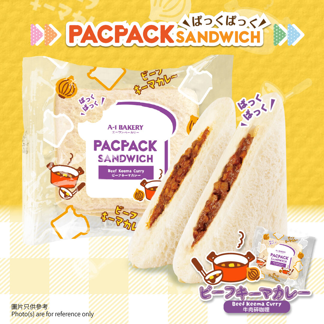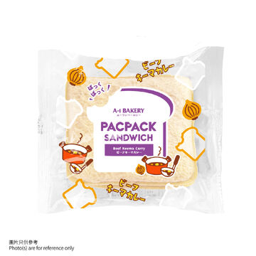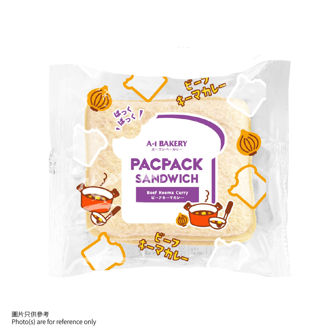 PacPack 三文治以香濃牛肉碎咖哩醬汁,夾入軟熟麵包,經典日式咖哩風味一口滿足。便攜包裝,隨時想食就食,微波或煎熱後香氣更誘人!