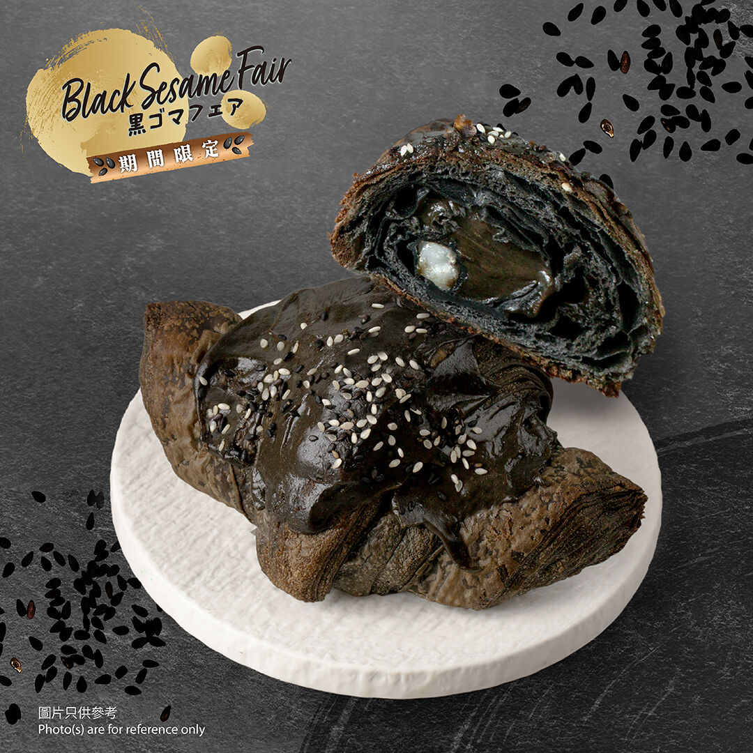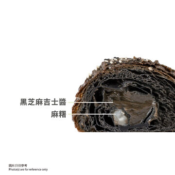 牛角酥特別選用竹炭麵團製作酥脆外皮,內裡加入幼滑黑芝麻吉士醬以及軟糯麻糬。外層撒上黑白芝麻,雙重芝麻的深沉香氣在口腔緩緩釋放,獨特而迷人,令人驚艷。