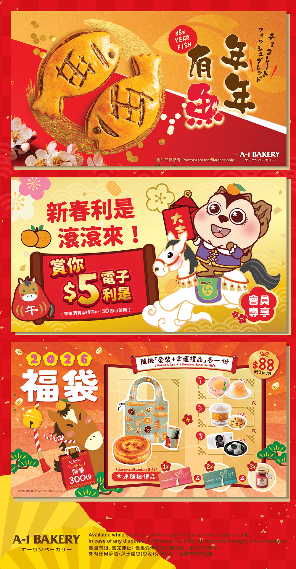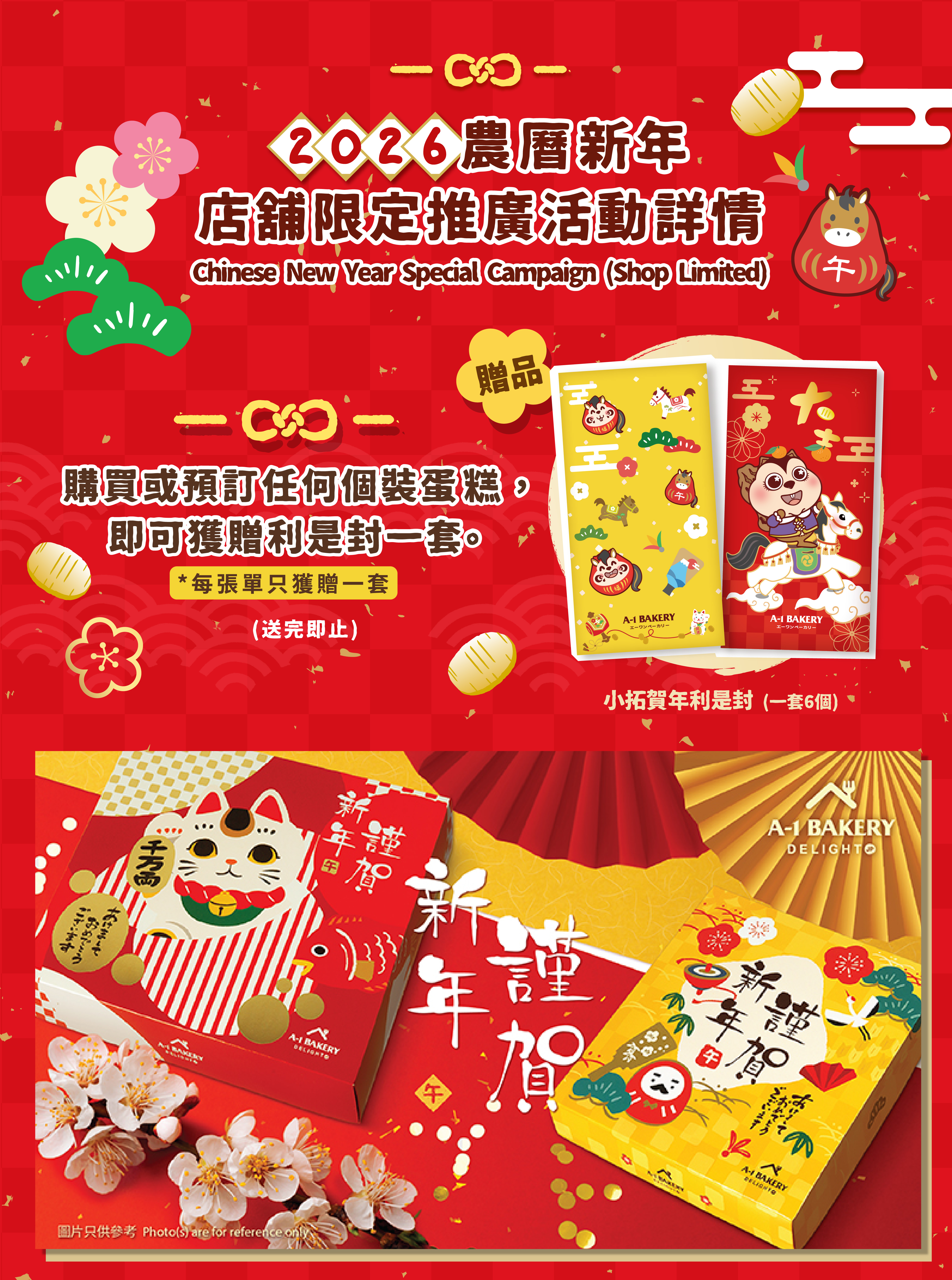 注意:節慶商品每日供應有限,售完即止。推廣優惠受條款及細則約束,A-1 Bakery Group保留最終決定權。